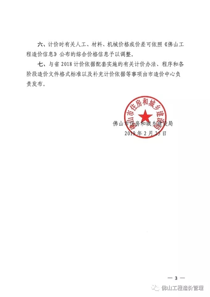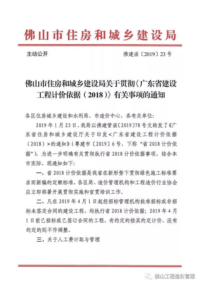 佛山市住房和城乡建设局关于贯彻《广东省建设工程计价依据(2018)》有关事项的通知